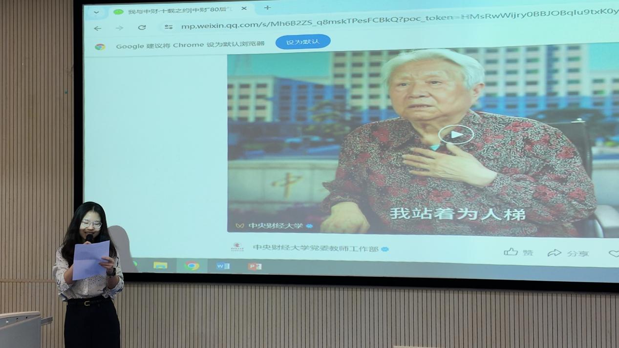 随后,学院全体教职工认真观看王巾英教授口述视频。在集体学习王巾英教授事迹后,市场营销系孙国辉教授、供应链与运营管理系高咏玲教授、战略系刘子諝助理教授依次分享了体会与感悟。