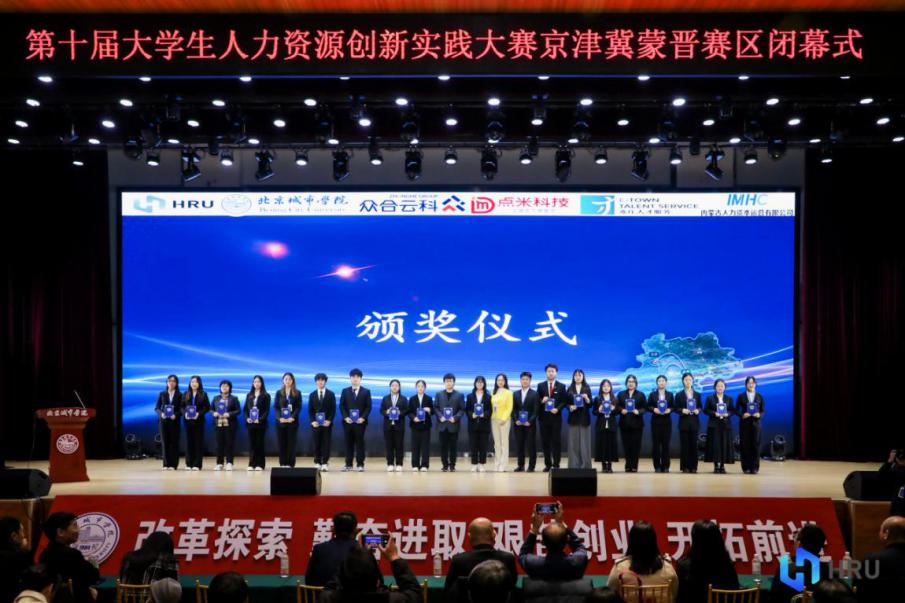 中国大学生人力资源创新实践大赛(HRU)是由中国人才交流协会等联合主办的国内顶级人力资源专项赛事。2023年,大赛列入中国高等教育学会《全国普通高校大学生学科竞赛目录》观察目录,成为教育部学科竞赛榜赛事。截至今年该赛事已连续举办十届,累计参赛高校500余所,参与学生8万余人,辐射影响师生30万人次,它通过贴近实战的竞赛方式,全面提升学生的人力资源管理及综合管理实践能力。本次京津冀蒙晋赛区赛共有来自三十余所高校的选手参加,赛事以“智启未来,才聚亦城”为主题,除原有的实务设计、无领导小组讨论、劳动争议处理、HR+出海等八个赛道之外,增加了北京经济技术开发区雇主品牌赛道,由企业人力资源高管、资深律师等组成评审团,对参赛选手的表现进行专业评审。