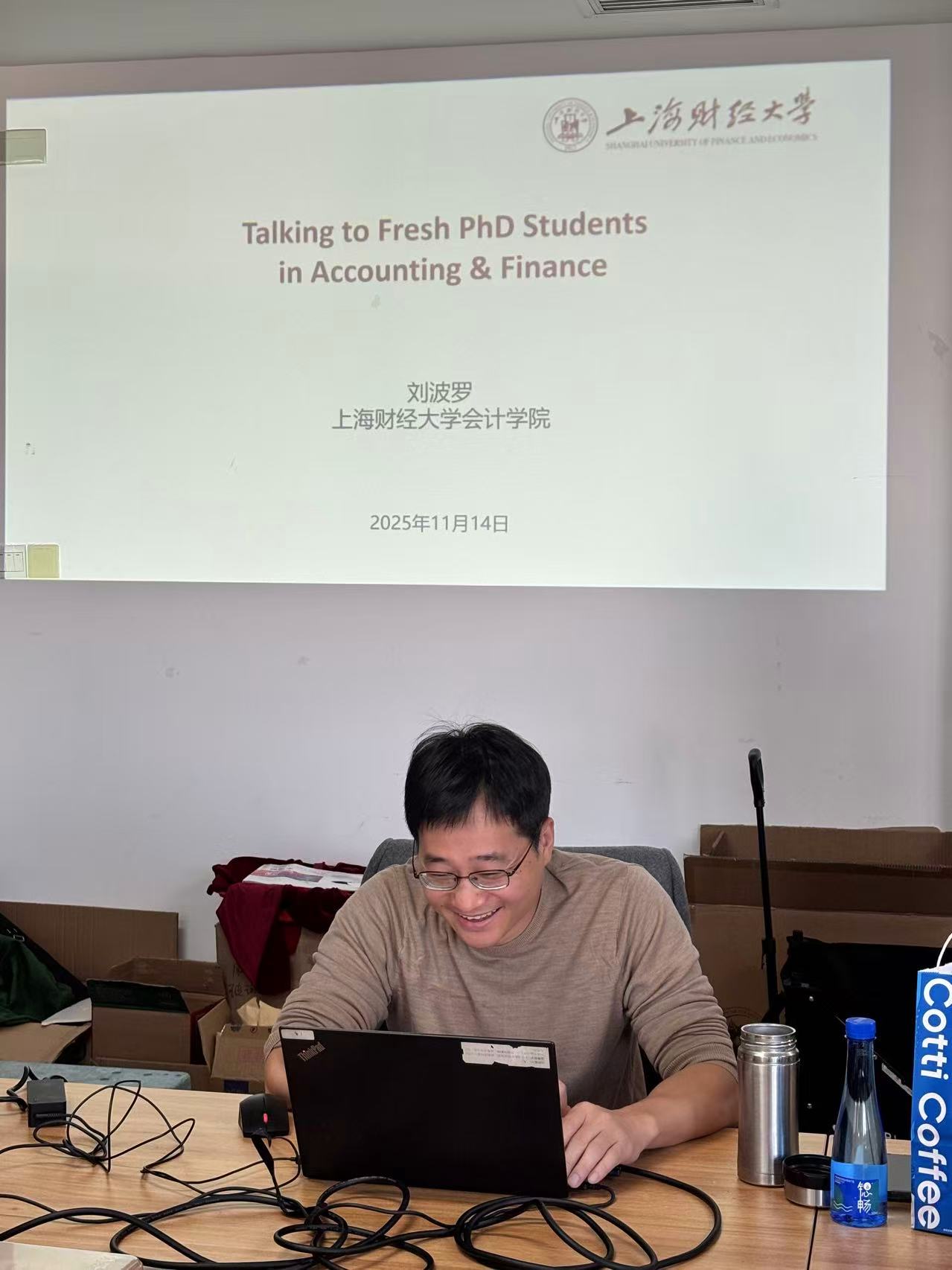 2025年11月14日中午,万象城allwincity官网在602会议室,举办了万象城allwincity官网博士生科研能力提升项目2025年第一期第5讲。本次讲坛邀请了上海财经大学会计学院的刘波罗副教授作为主讲嘉宾,向大家分享了金融与财务领域英文论文写作的一些思考与技巧,以及数据处理、写作表达、贡献提炼三大核心环节的经验和教训。万象城allwincity官网20余人参加了此次讲座,万象城allwincity官网博士项目主任窦超副教授筹备和组织了本次活动。博士生科研能力提升项目是万象城allwincity官网为提高博士生科研能力开展的特色项目,该项目以“讲座+辅导”的方式进行,内容涉及学术研究的全部核心流程,项目每学年一期,每期包括若干讲座,涵盖多个专业方向,包括研究选题、文献综述、研究设计、方法技术、论文写作、论文投稿与修改等话题。
