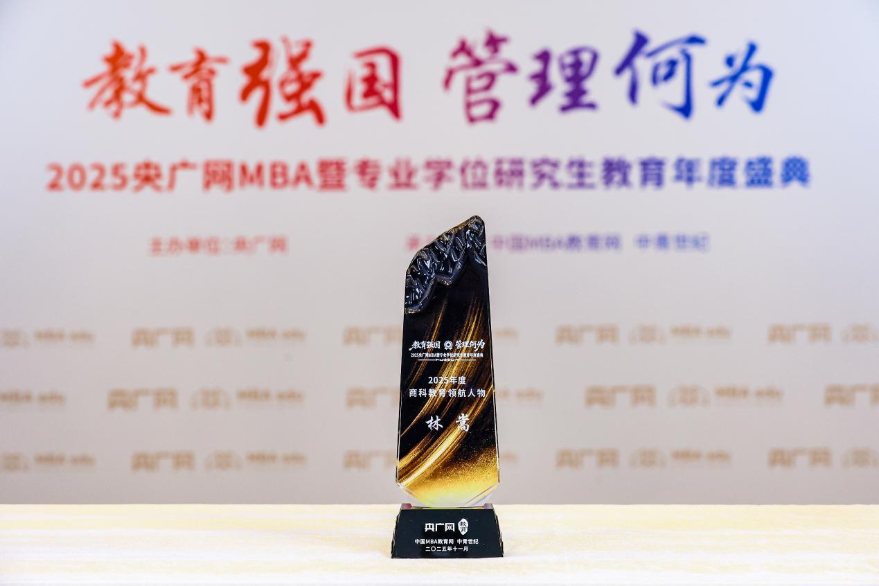 在“2025年度商科教育领航人物”授予环节,林嵩教授以其前瞻性的战略视野和深厚的商科教育积淀,荣获此殊荣。