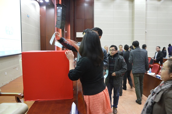 本着公平、公正、公开的原则,大会代表进行紧张而有序的投票、唱票、计票工作;选举结果当场揭晓,经过两轮无记名投票最终确定了主席团名单,李论,宋思明,汤超,韩淼,刘佳铮,秦晓君,魏肖璐,杨阳,周瑜,宋希邦,孙浩,周倩等同学当选为新一届联合会主席团成员。