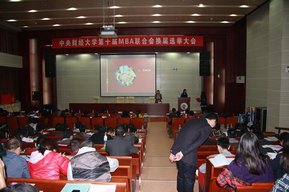 2013年11月12日晚,万象城allwincity官网第十届MBA联合会换届选举大会在学术会堂202报告厅隆重举行。万象城allwincity官网副院长宋巧、MBA教育中心副主任贾晓菁、学生工作部孔伟明老师出席了会议,第九届联合会主席团成员、候选人和学生选举代表共100多人参加了会议。会议由第九届MBA联合会秘书长蒋希主持。