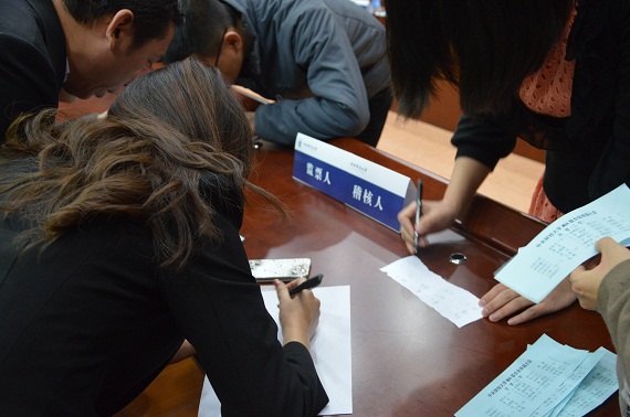 接下来,进入了本次大会的重头戏——竞选环节,采取候选人竞选演讲、自由答辩,代表们无记名投票的形式进行。在主持人蒋希宣读完换届选举办法、会场纪律后,来自2012级、2013级的30名候选同学按抽签顺序进行了精彩的竞选演讲,他们分别对自己的工作经历和竞选初衷做了介绍,并对当选后的未来工作做了充满激情与期待的设想,每位候选人在演讲当中都充分表现出了自己的特点和风采。现场气氛热烈,掌声和欢笑声此起彼伏。在竞选答辩环节,许多同学的问题深刻而且独到,候选人的回答也各具特色、精彩纷呈,赢得了同学们的一阵阵掌声。