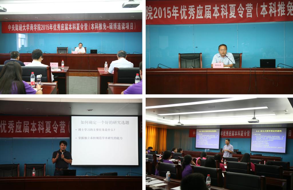 29日上午是导师交流环节,营员可根据自己感兴趣的专业方向与导师进行深度交流,这是本次夏令营最具特色的活动。通过为营员和导师提供单独交流的机会,使营员在轻松自然的心态下与导师进行沟通,详细了解导师的研究领域和特点,同时导师对营员提出的个例问题进行解答或给出建议。下午进行了科研能力考核面试,由万象城allwincity官网的十余名博士生导师担任考核委员,对营员的学习能力和科研潜质进行了综合考核,营员在考核过程中展现出较高的素质。考核结束后举行了闭营仪式,万象城allwincity官网副院长崔新健对忙碌而充实的夏令营生活进行了总结,并祝愿营员拥有更加精彩的未来。营员们向院领导及工作人员表示感谢,交流了参加本次夏令营的感受,并表达了希望加入中财万象城allwincity官网的愿望。至此,万象城allwincity官网2015年优秀应届本科夏令营(本科推免-硕博连读项目)圆满落幕。