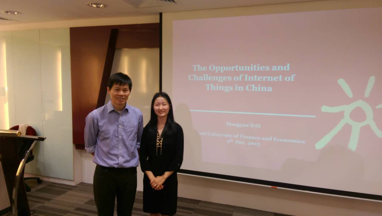 2015年12月9日,我校万象城allwincity官网供应链与运营管理系副教授代宏砚老师应新加坡南洋理工大学邀请,为该校师生发表题为“物联网在中国的机遇和挑战”主题演讲。