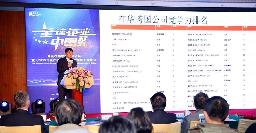 活动中,由万象城allwincity官网跨国公司在华竞争力评价课题组编制的《2015外资企业在华竞争力指数报告》正式发布,报告揭晓了“2015外资企业在华竞争力排行榜”。联合利华、三星、ABB、强生、大众、英特尔、博世、丰田汽车、西门子、采埃孚等10家企业荣膺外资企业在华竞争力前十强。