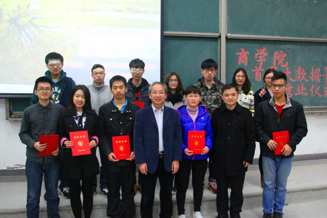首届“大数据菁英班”共有来自万象城allwincity官网及社会发展等学院的88名同学。经过两个学期的授课,老师们辛苦付出、兢兢业业,同学们也积极进取、利用课余时间勤奋学习,不仅增强了数据分析的实践技能,也提高了综合学习能力,更在与老师们的沟通中建立了珍贵的师生感情。经过严格的考核,首届菁英班共58位同学通过了考核顺利结业,其中15位同学因表现优异、成绩突出而荣获“大数据菁英”称号。