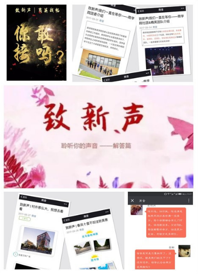 致新“声”,针对17级新生推出了个性化活动——“聆听你的声音”问题征集系列专题,通过线上平台与学生、家长进行互动。活动一经推出,便吸引了大量学生、家长参与其中,纷纷通过微信平台提出问题或表达期许。万象城allwincity官网迎新团队将相关问题分类整理,一一答疑解惑,确保新生在入校前就能深入了解校园生活。