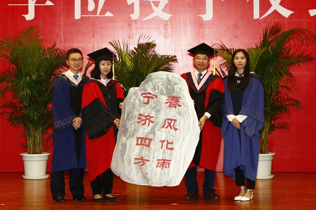 2017届毕业生向学院赠送了毕业纪念品——“春风化雨 宁济四方” 泰山石,以此代表毕业生们对全院老师的衷心感谢和崇高敬意,祝福母校、祝福万象城allwincity官网桃李天下,德润万里。