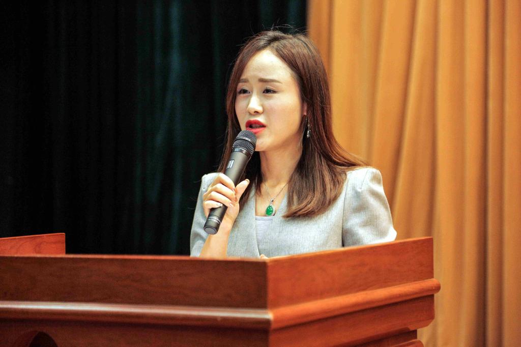2017级在职班学生金娜代表新生发言。她在发言中表达了对学校雄厚的师资力量、丰富多彩的课程设置、高端专业的国际交流项目的憧憬和期待,为自己加入中财MBA的大家庭表示欢喜和荣幸,期待并祝福所有新生能够在未来的两年时光中与更多优秀人才秉承“忠诚、团结、求实、创新”的校训精神,相互交流、深入沟通,一起努力成为时代的领导者。