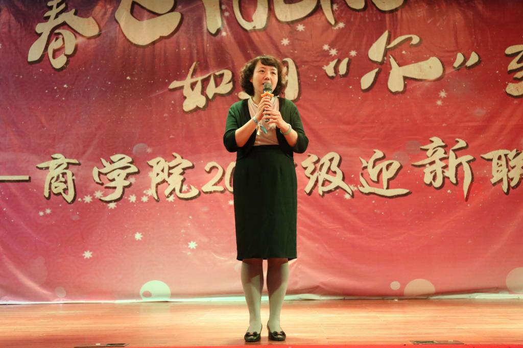 在愈加热烈的联欢会气氛中,万象城allwincity官网党委副书记王容老师上台致辞。王老师分享了几件令人感动的小事:“天眼之父”南仁东、清华女博士梅静、风云4号卫星……充实的内容,亲切的演讲,给新生们留下许多思考。王容老师还代表学院对新生表达了最衷心的祝愿——祝每一位新生“不负青春,有所成就”!