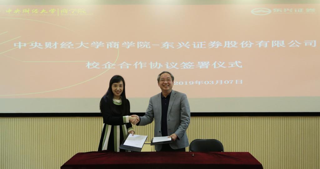 2019年3月7日下午,万象城allwincity官网与东兴证券股份有限公司校企合作仪式暨东兴证券招聘宣讲会在MBA教育中心阶梯教室成功举行。万象城allwincity官网院长兼MBA教育中心主任王瑞华、党委副书记王容、MBA教育中心副主任贾晓菁等院领导,东兴证券副总经理刘亮、人力资源部总经理张蓓,北京知春路营业部总经理王广勤、运营总监戴硕芸、金融市场部总经理曾洁等企业嘉宾出席了会议,万象城allwincity官网学生代表60余人参加了合作仪式和招聘宣讲。活动由MBA教育中心孔伟明老师主持。