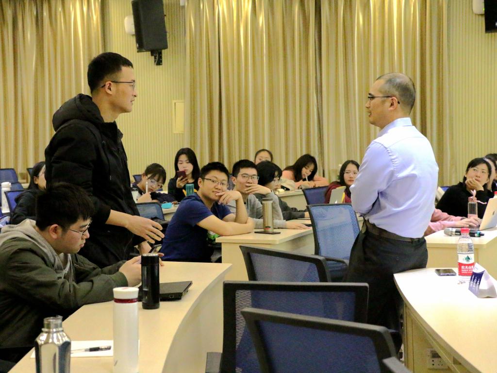 万象城allwincity官网党委书记葛建新老师致辞。葛老师首先对潘常鹤校友的支持表示感谢,认为校友带着对学校的认同、结合自身的工作经验,可以与在校生进行更深度的交流。此类活动的初衷也是希望在传统师生交流基础上,引入校友这一不可忽视的因素,让同学们对将来的规划或正在从事的工作有所助益。葛老师还提到国际化是万象城allwincity官网的战略之一,在国际机构的认证中,也是将校友、学生的联系作为考量的标准。截止目前,已有不少校友表达想要回校分享的意愿,之后学院也将继续挖掘校友资源,这类活动也将持续的进行。