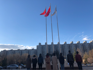 3月20日早7时,工商18-3支部团支委、部分团员代表与“芮+”导师在国旗台前集合,共同参加了支部系列团日活动第一项——升国旗仪式。