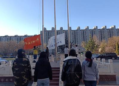 初春寒冷的清晨,踏着晨光,举行升旗仪式。朝阳一点点展露,全场的气氛庄重而严肃。随着国歌声的响起,升旗手升起五星红旗,在旗杆顶端猎猎飘扬。随后,团支书孟庆平围绕个人初心与梦想进行主题演讲,不忘初心,青年担当。