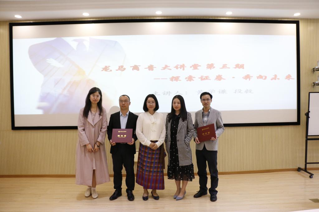“龙马商音第三期——探索证券•奔向未来”讲座于5月11日上午在MBA阶梯教室举行。本次讲座特邀中国联通证券事务代表黄学谦校友、方正证券投资有限公司高级副总裁段毅校友讲座,就职于财政部的刘玢校友和就职于中国工商银行总行的张金慧校友也到场与同学们交流,万象城allwincity官网党委书记葛建新出席并致辞。
