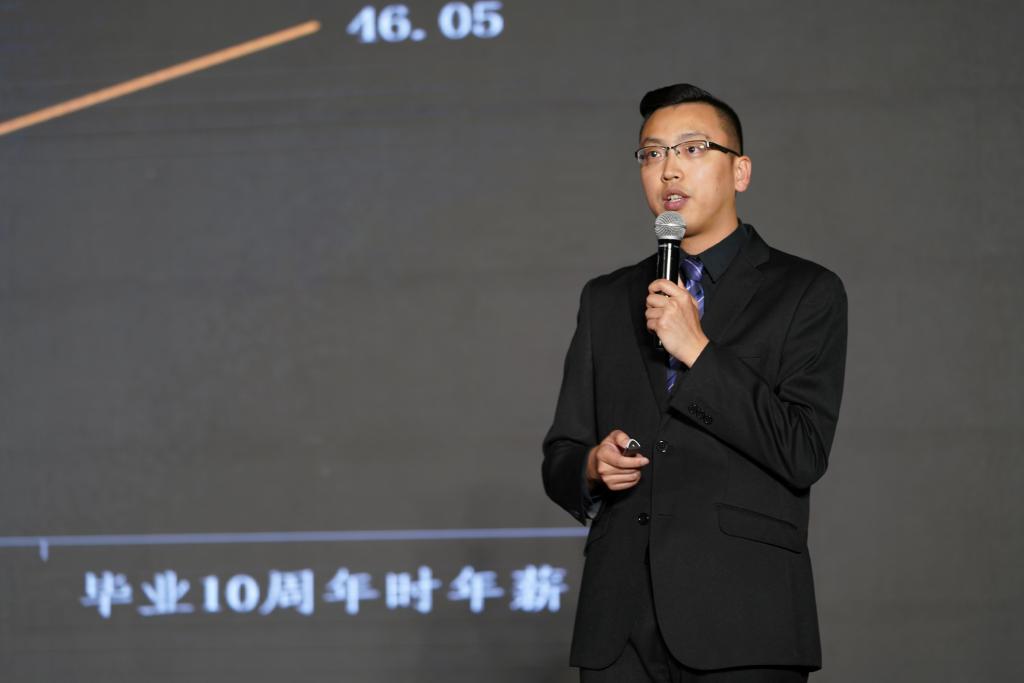 MBA教育中心项目发展部黄基鑫老师以《从优秀到卓越》为主题向考生介绍MBA项目。他首先隆重介绍了中财MBA公众号升级推出微信智能机器人的咨询功能,它将陪伴各位考生实现备考招生咨询。他向考生详细介绍相关招生政策,并从中财MBA的财金特色、国际视野、师资力量、职业发展等进行详细介绍,并以校友和在校生的故事激励大家坚持MBA的精神,从优秀到卓越。