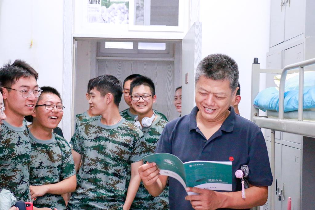 虽然由于天气下雨的原因未能在训练场看望同学们,但转战宿舍走访也有别样的温馨,更加拉近了师生距离。同学们见到老师们到来纷纷起身,与老师们热情交流。