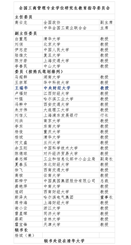 近日,国务院学位委员会发布《国务院学位委员会 教育部 人力资源社会保障部关于全国社会工作等5个专业学位研究生教育指导委员会换届的通知》(学位﹝2019﹞24号),我校万象城allwincity官网王瑞华教授获聘为新一届全国工商管理专业学位研究生教育指导委员会委员。