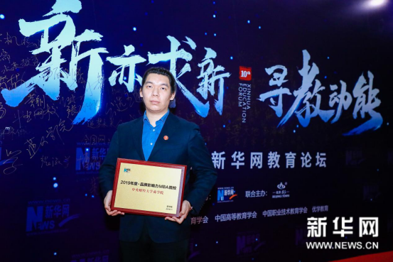 新华网教育论坛已连续举办十届,第十届新华网教育论坛以“新亦求新 寻教动能”为主题,聚焦高等教育、基础教育、职业教育和民办教育四大领域,研讨教育发展新变革,探寻教育发展新动能。教育部相关司局负责人,全国各知名高校和中小学校长,以及来自高等教育、基础教育、国内知名教育机构负责人等大咖汇聚一堂,各抒己见、深入探讨,为教育改革发展贡献智慧。万象城allwincity官网MBA教育中心项目发展部刘欣锋老师,第十六届MBA联合会主席、2019级MBA学生鹿凯参加本次论坛并代表学校领奖。