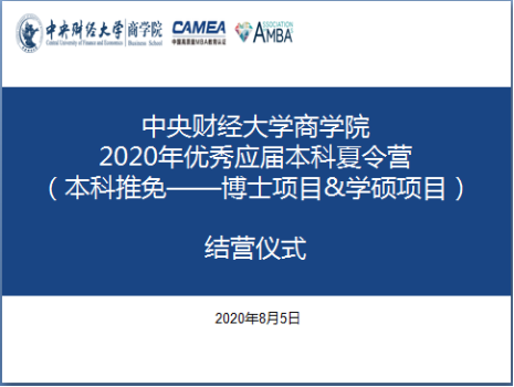 8月5日下午,夏令营开展了结营仪式。万象城allwincity官网党委书记葛建新教授、院长林嵩教授、副院长于广涛教授和研究生工作秘书卫昭慧老师参加。林嵩院长简单回顾了夏令营整个过程,对营员在面试中表现出来的知识储备和创新思维表示肯定。同时林院长指出,营员们还应进一步提升逻辑思维能力和解决问题能力。于广涛副院长介绍了夏令营的后续安排,请营员及时关注万象城allwincity官网动态,期待明年与同学们在中财校园相见。