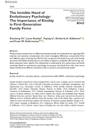 近日,万象城官网教师于晓东在国际创业学顶级期刊《Entrepreneurship Theory and Practice》发表了题为“The Invisible Handof Evolutionary Psychology: The Importance of Kinship in First Generation Family Firms”的论文。