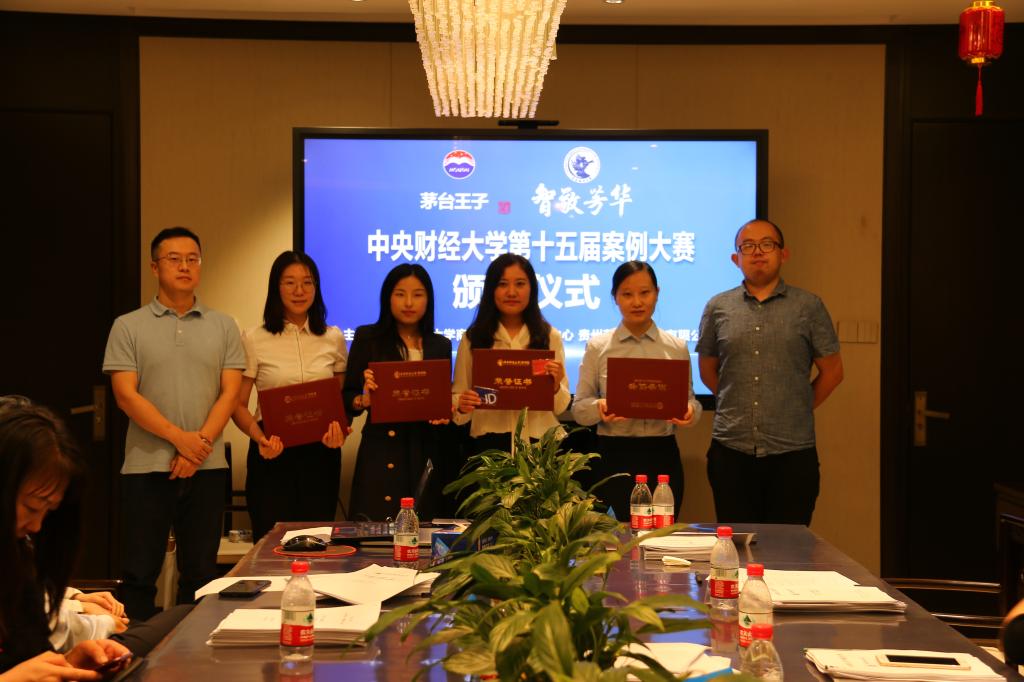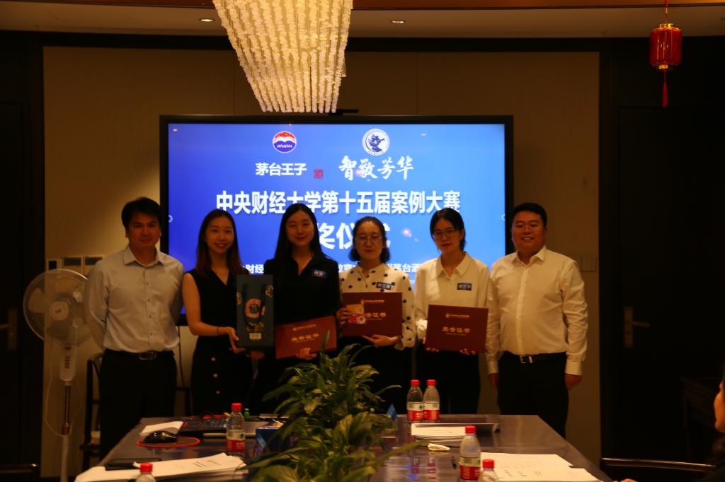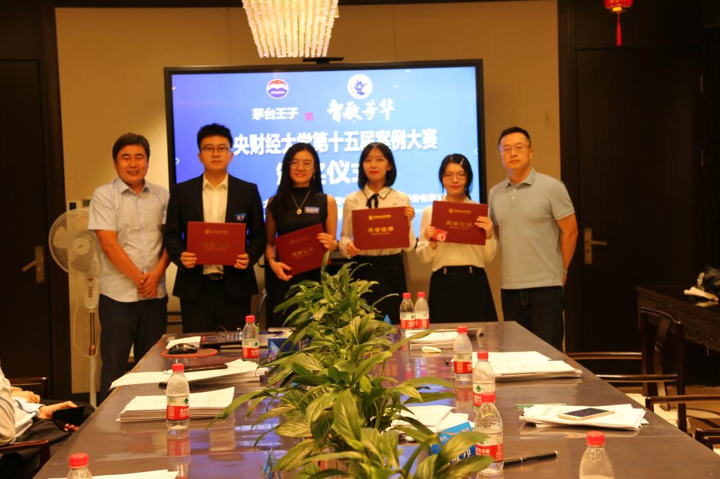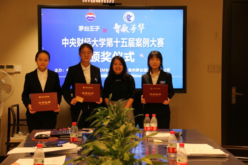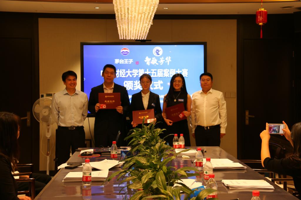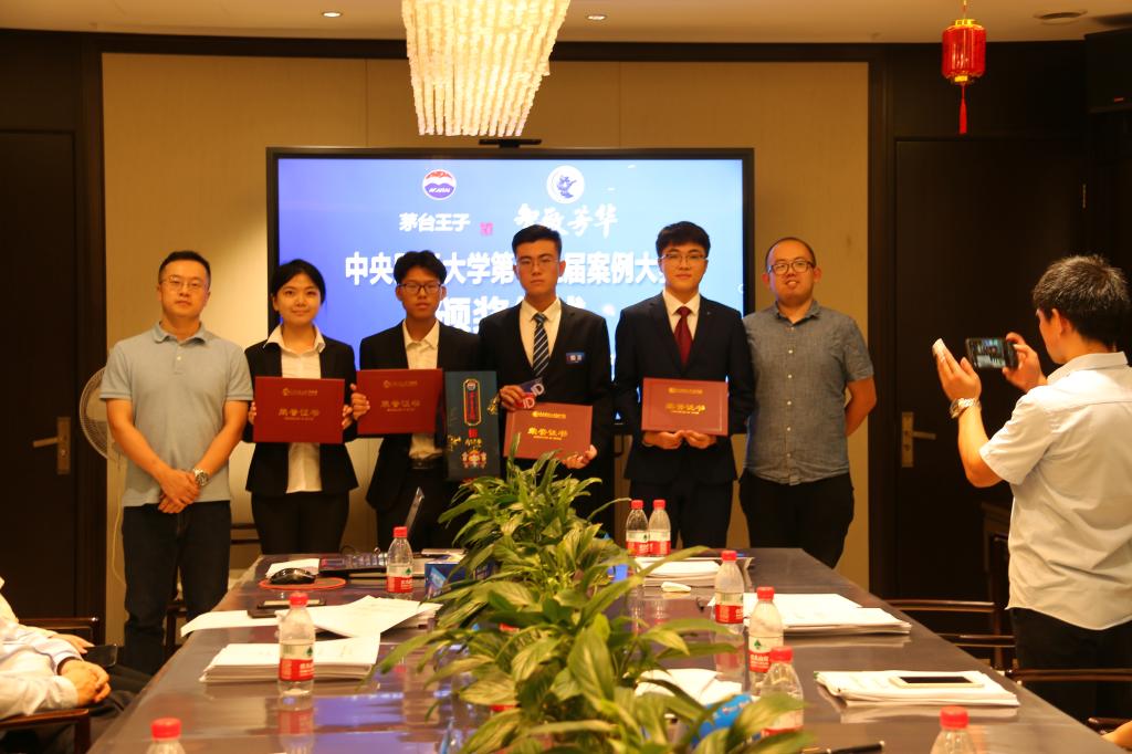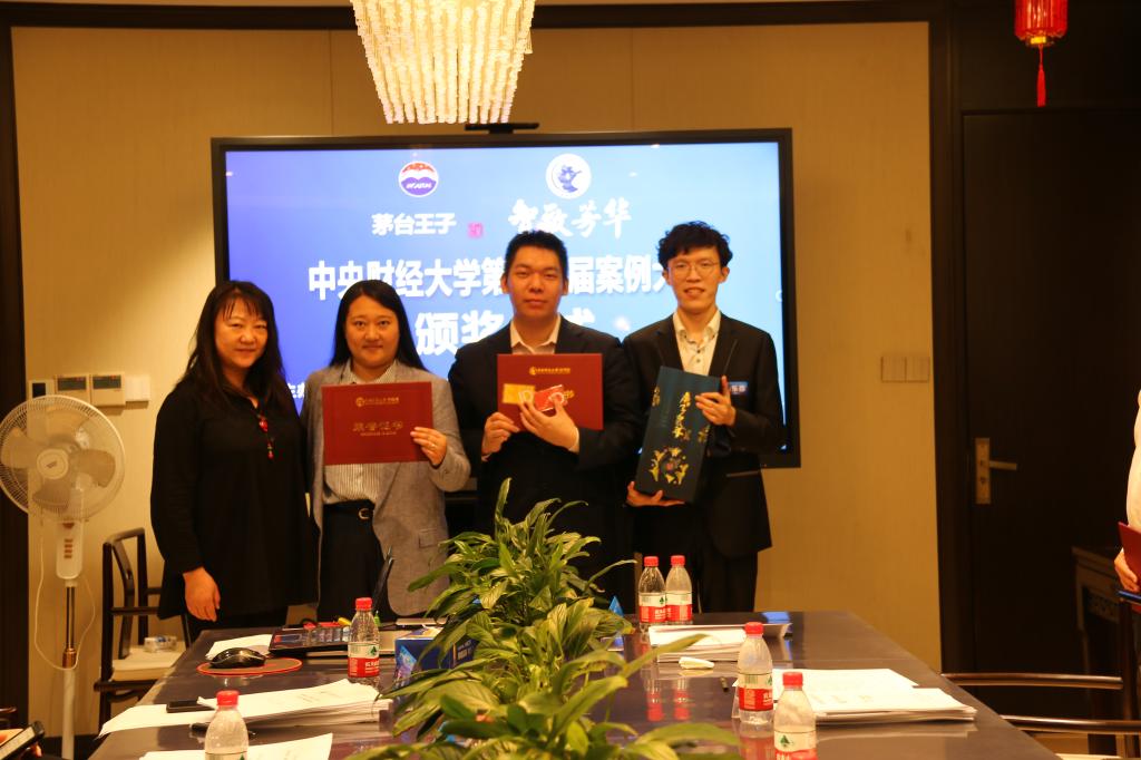 接下来,进入案例大赛的颁奖环节,获得此次案例大赛冠军的是乘风破浪喝茅台队(队员:胡天慧、安伦、曹立青、郭文宇)、亚军杯酒歌“茅”队(队员:张楚晗、鹿凯、赵曌、张乐彦)、季军人间小茅台队(队员:姜同园、林好、方杨、晏童舒)、最具商业潜力奖东方英才--绝世独立队(队员:曹冬冬、安芳、刘慧颖、张彩侠)、最具创意奖七心协力队(队员:赵文、从文、郝欣欣、刘文君)、最佳团队奖你的茅台我来干队(队员:李政辰、刘镏、姜彤、岳昊楠)、优秀奖将进酒队(队员:胡东、陈尧、陈苇杭、白文暄)、优秀奖学院南路39#队(队员:高源、刘洋、王旖琳、胡佳慧)、最佳表现个人奖郝欣欣、姜同园、鹿凯同学。
