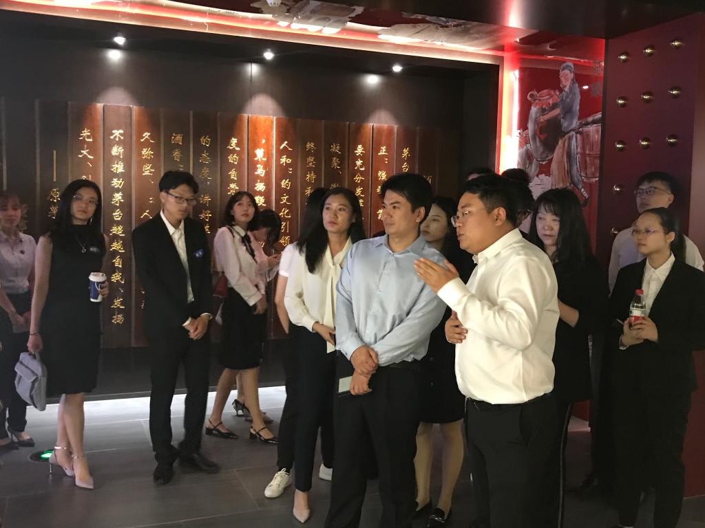 案例展示、互动答辩以及颁奖环节过后,贵州茅台酱香酒营销有限公司北京省区副经理张峻玮经理带领全部参赛人员参观了茅台集团展示厅,为大家详细介绍了国酒茅台悠久的酱香历史,解释了为何“离了茅台镇酿不出茅台酒”,向同行的老师和评委们介绍了茅台系列酒的品牌营销战略,以及品牌背后的故事,大家在参观过程中对茅台酒有了更加全面立体的了解。