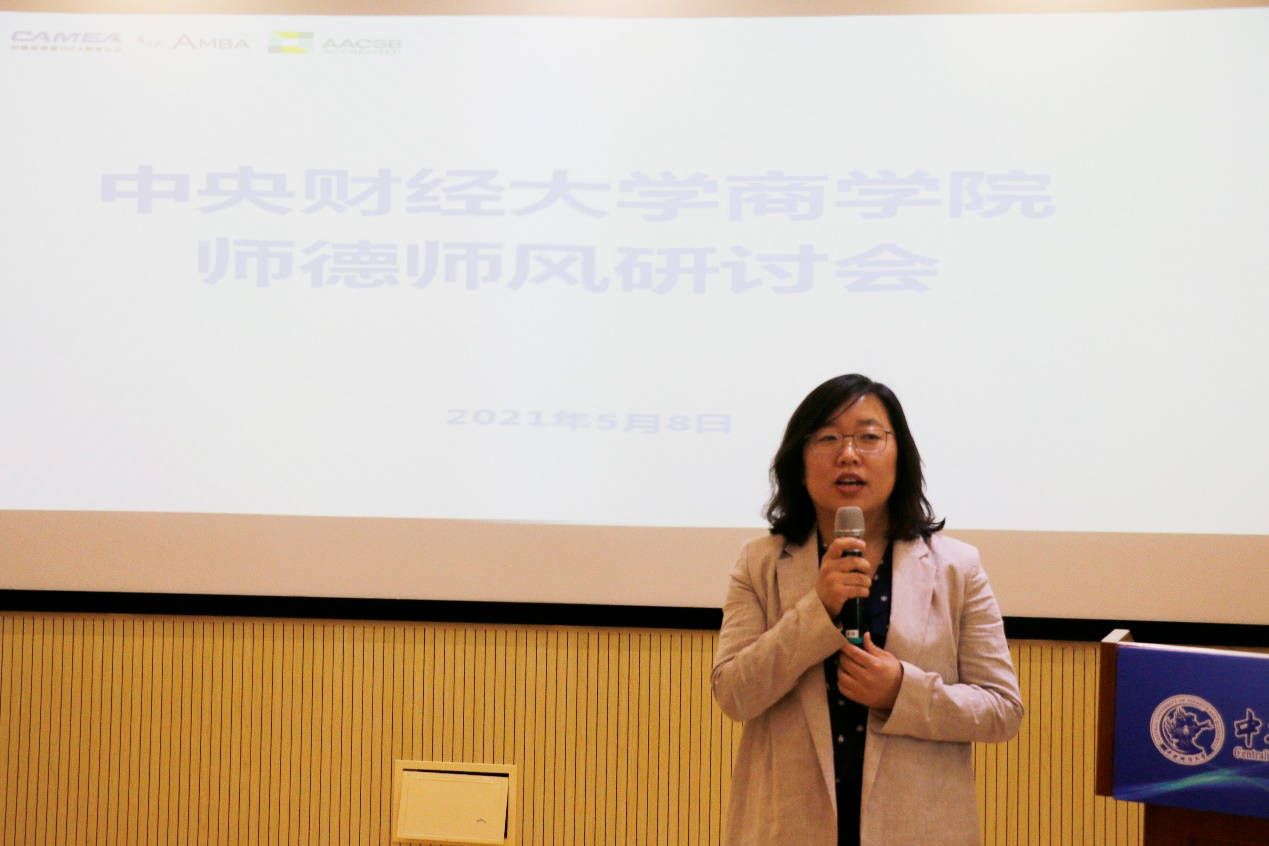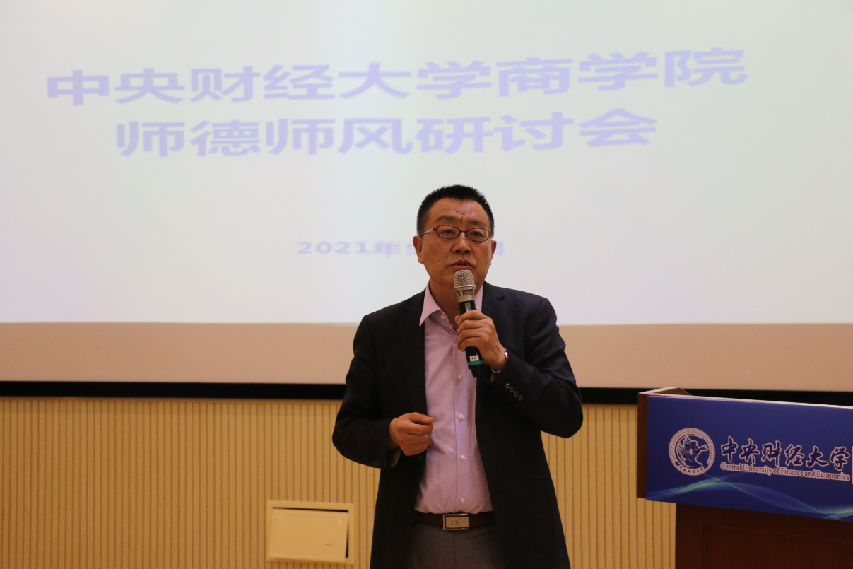 在交流研讨部分,与会老师结合自身工作实际,围绕如何建立学院师德师风长效机制建设,进行了经验交流和探讨。如在学院层面,建立本科生导师制度,进一步丰富完善“三全”体系;将师德师风作为评价教师素质的第一标准,在教师聘用、考核、晋升、评优评奖中充分体现,对师德师风失范行为实行一票否决。在各系层面,积极开展学习宣传,自主开展师德师风专题学习教育活动,学习国家和教育部文件精神,学习先进教师榜样;鼓励教师参与建设学生的第二课堂培养,如商业领袖实训营、工商管理专业领航计划、大数据菁英班、学术新秀班、专业竞赛等,培养新时代复合型人才;把师德师风建设融入到课程思政建设中,严把教材选用关。