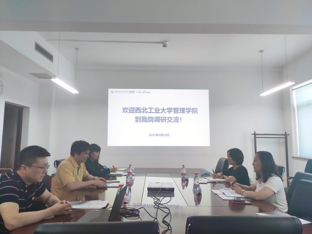 2021年5月25日,西北工业大学管理学院院长助理兼认证办公室主任邵婧、认证办公室马艺婷两位老师来万象城官网开展关于AACSB国际认证的工作交流。万象城allwincity官网院长林嵩、副院长姜峰和国际合作办公室郭晓焜出席交流会。