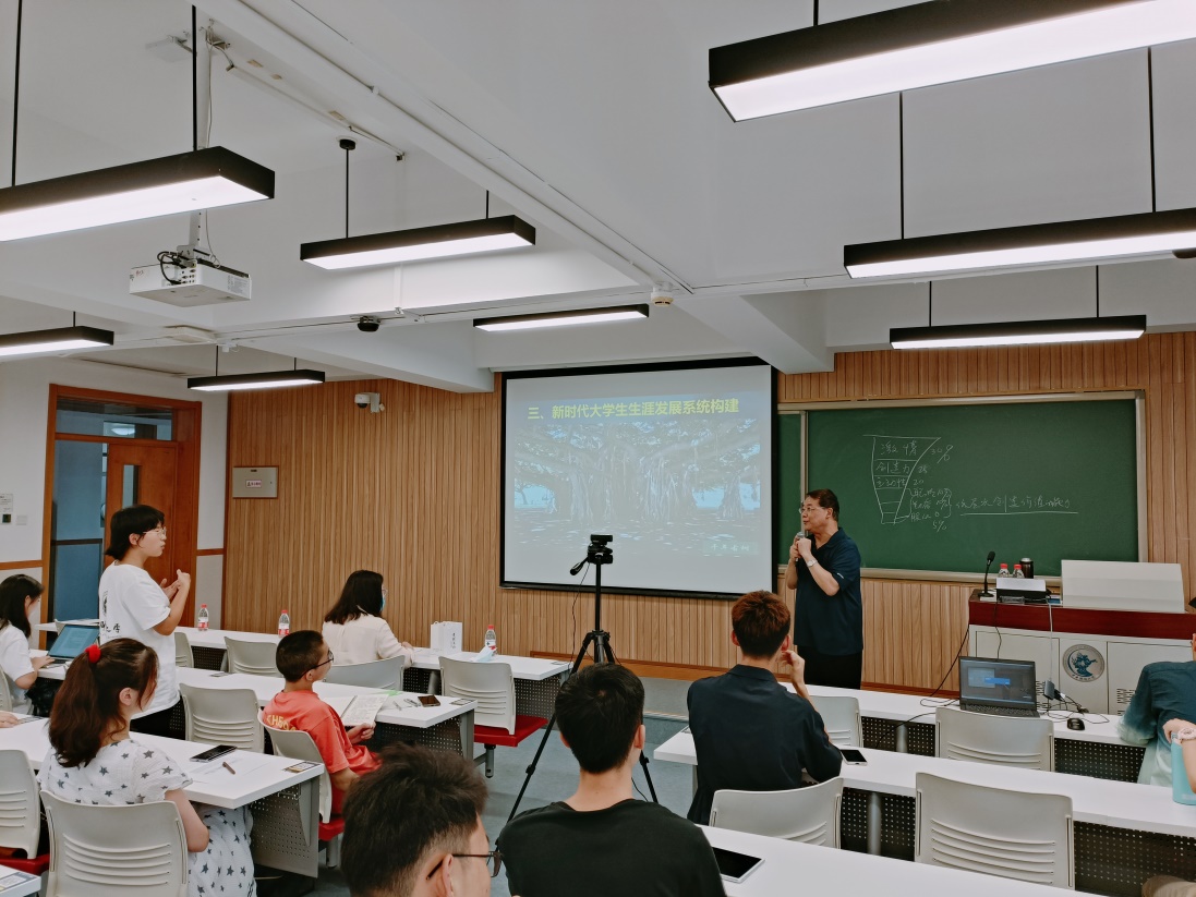 李家华教授从新时代大学生生涯发展的责任自觉和生涯规划的格局定位两方面给同学们介绍了生涯教育的意义。