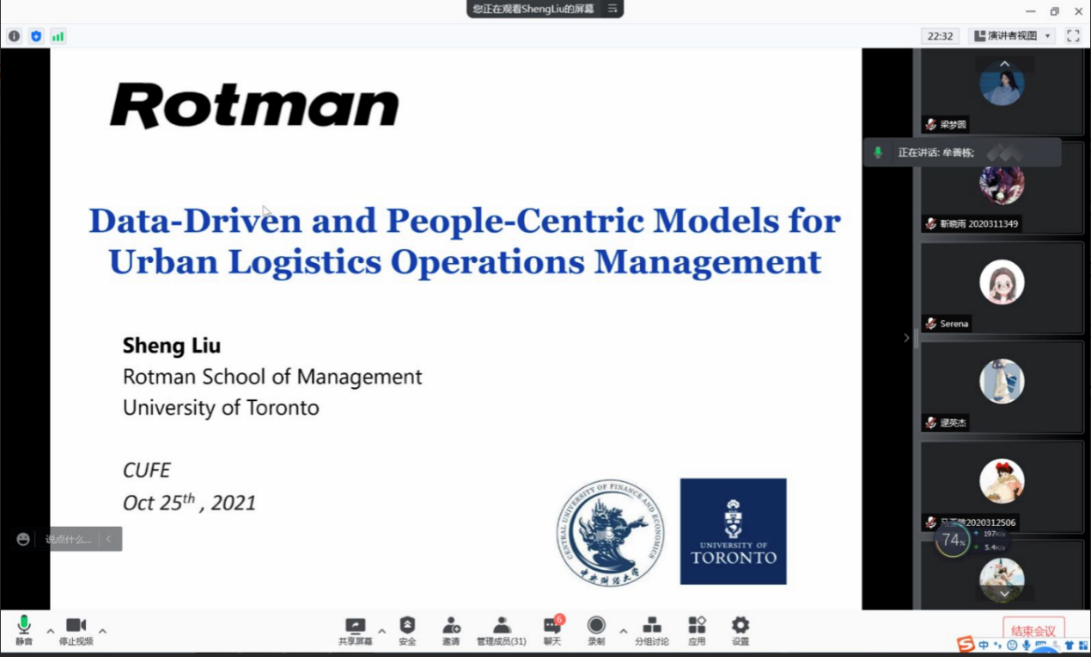 2021年10月25日上午10点半,万象城allwincity官网通过线上腾讯会议和线下同步会场(学院南路校区主教615会议室)结合的方式,开展了本年度万象城allwincity官网卓越学术讲坛第八期暨管工学院智能管理交叉学科系列讲座第4期。本次讲坛邀请了加拿大多伦多大学罗特曼万象城allwincity官网运营管理和统计系助理教授刘晟博士作为主讲人,共有包括学院教师、硕博生和本科生在内的线上及线下四十余人出席了本次活动。