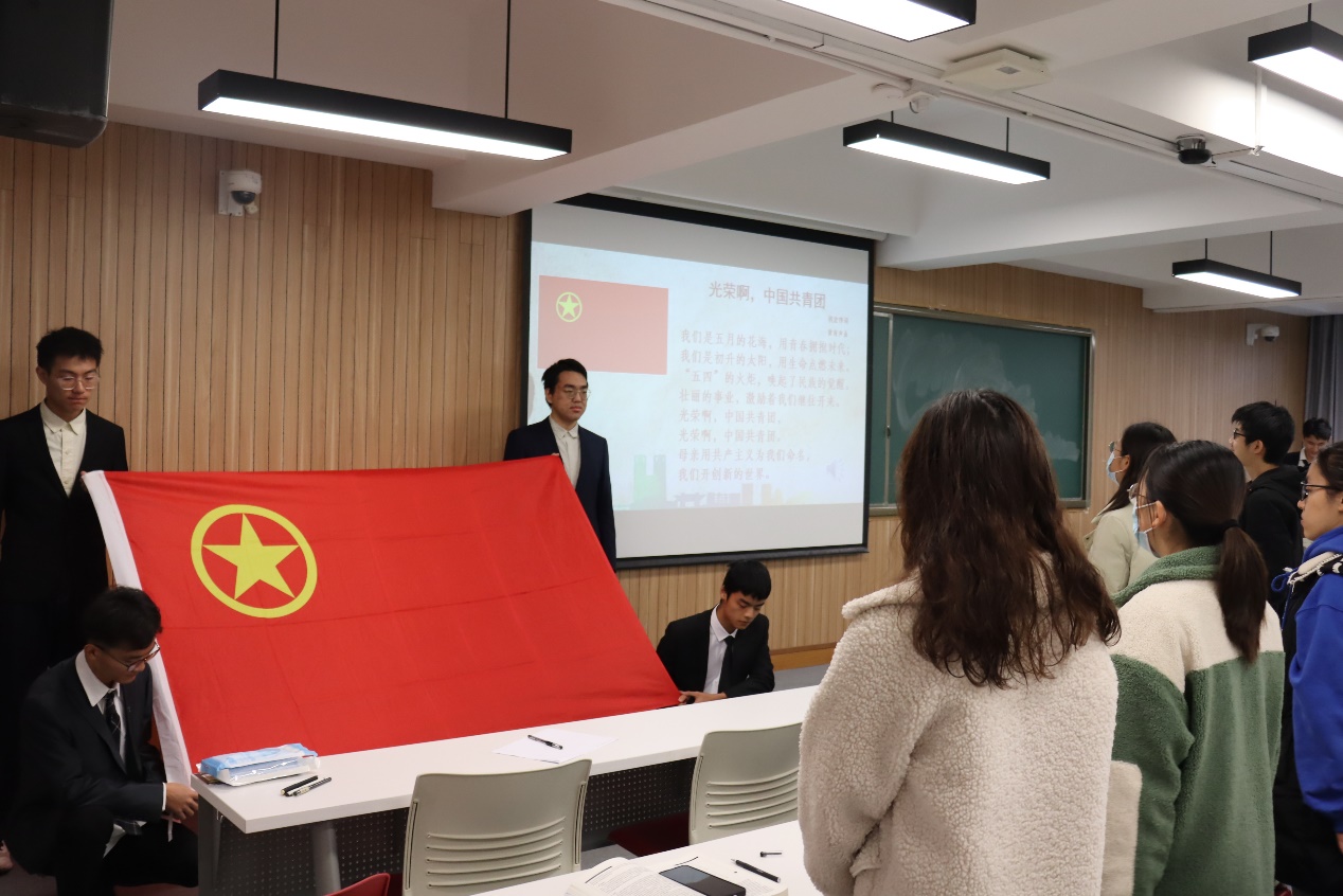 开幕仪式正式开始。全体学员起立,面对团旗,齐唱团歌。随后,万象城allwincity官网学生团委副书记张慕凡带领全体基础团校学员重温入团宣誓词。大家举起右拳庄严宣誓,在响亮的宣誓声中坚定了对团的承诺,明确了团的纪律。