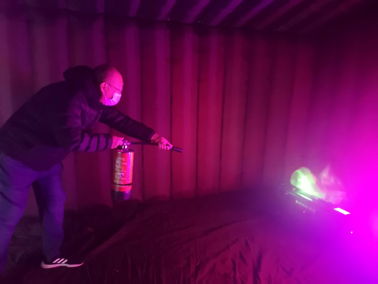 在统一讲解后,在场的每位师生逐一进入演练室,体验了灭火全过程。通过体验式的教学形式,学院师生掌握了消防安全知识,对灭火器的正确使用和如何扑灭初起火灾有了更深的认识。