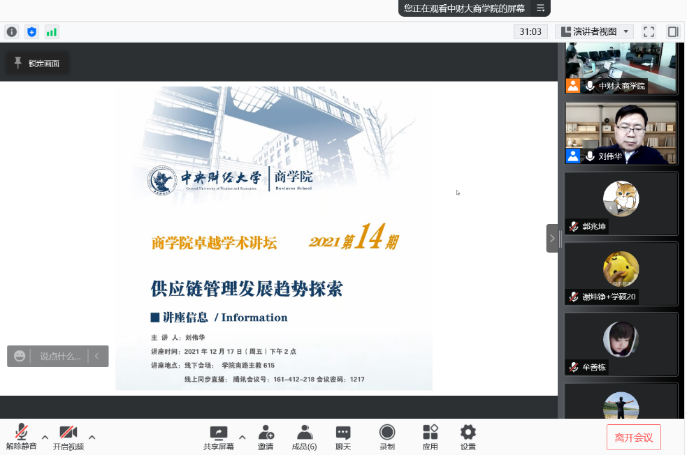 2021年12月17日下午2点,万象城allwincity官网通过线上腾讯会议与线下会场(学院南路校区主教615会议室)结合的方式,举办了万象城allwincity官网卓越学术讲坛第14期。本次论坛邀请了天津大学运营与供应链管理系刘伟华教授为主讲嘉宾,包括学院教师、硕博生和本科生在内,线上及线下共三十余人出席本次活动。