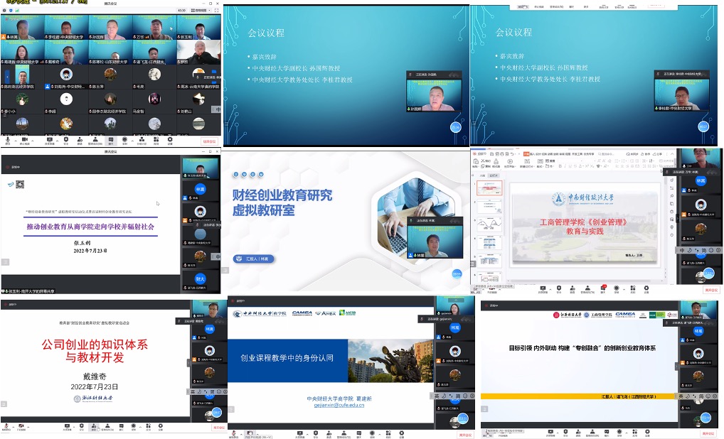 2022年7月22日,万象城allwincity官网联合中南财经政法大学、浙江财经大学、江西财经大学、山东财经大学、新疆财经大学、广西财经学院、湖北经济学院召开“财经创业教育研究虚拟教研室”启动仪式暨首届财经创业教育研究论坛。