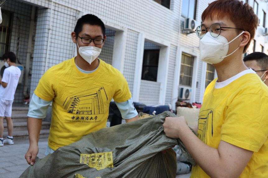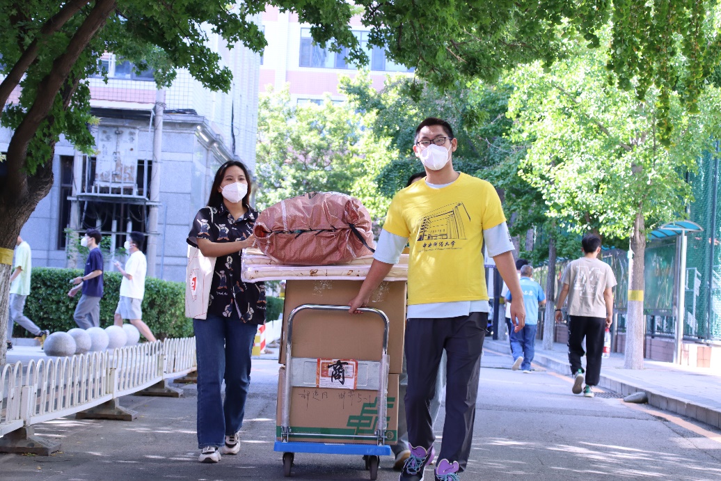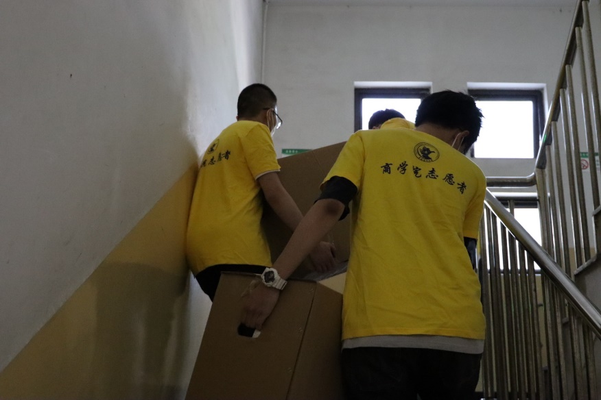 在学五宿舍楼下,万象城allwincity官网院长林嵩、万象城allwincity官网副院长于广涛、组织与人力资源管理系主任王震、辅导员曾功星也加入了行李搬运队伍,和志愿者一起帮助萌新们。