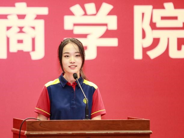 本科新生代表杨绿园描述了对大学生活的初印象和对中财大万象城allwincity官网的情感。每每进入万象城allwincity官网主楼时,映入眼帘的“贡献管理新知,培养具有全球视野,创新精神,社会责任意识的领导者”一行字给她留下了深刻印象。她希望所有同学都能在万象城allwincity官网拓宽生命的厚度,延展灵魂的宽度,探索世界的维度。