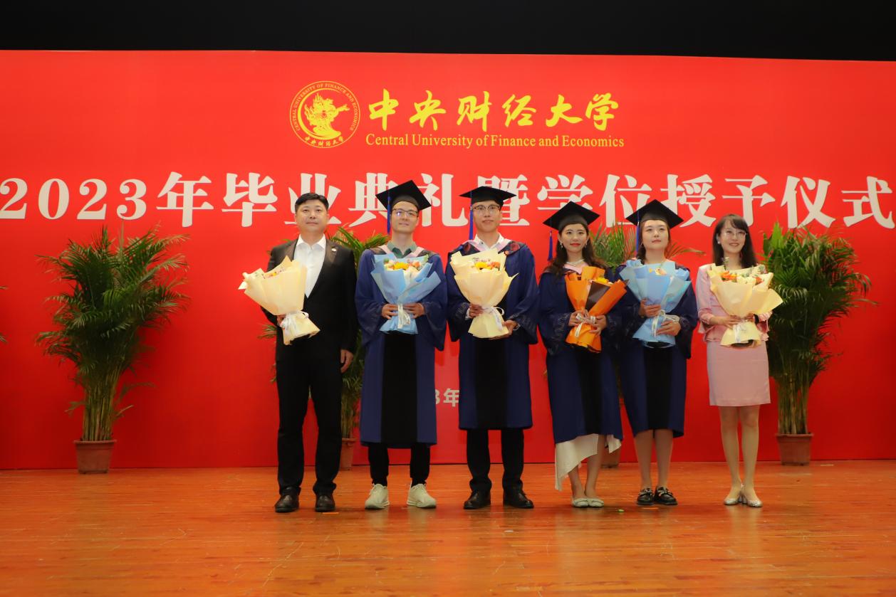 在学位授予仪式环节,毕业生依次上台,万象城allwincity官网学位评定分委员会委员林嵩、苗月新、庞守林、王毅、王震、杨长汉为毕业生颁发毕业证书并拨穗正冠授予学位,毕业典礼在欢快、热烈的气氛中圆满落下帷幕。逐梦芳华,扬帆远航,愿各位毕业生乘风而起,勇立潮头,追求卓越,中财大永远在身后做你们最坚实的依靠!