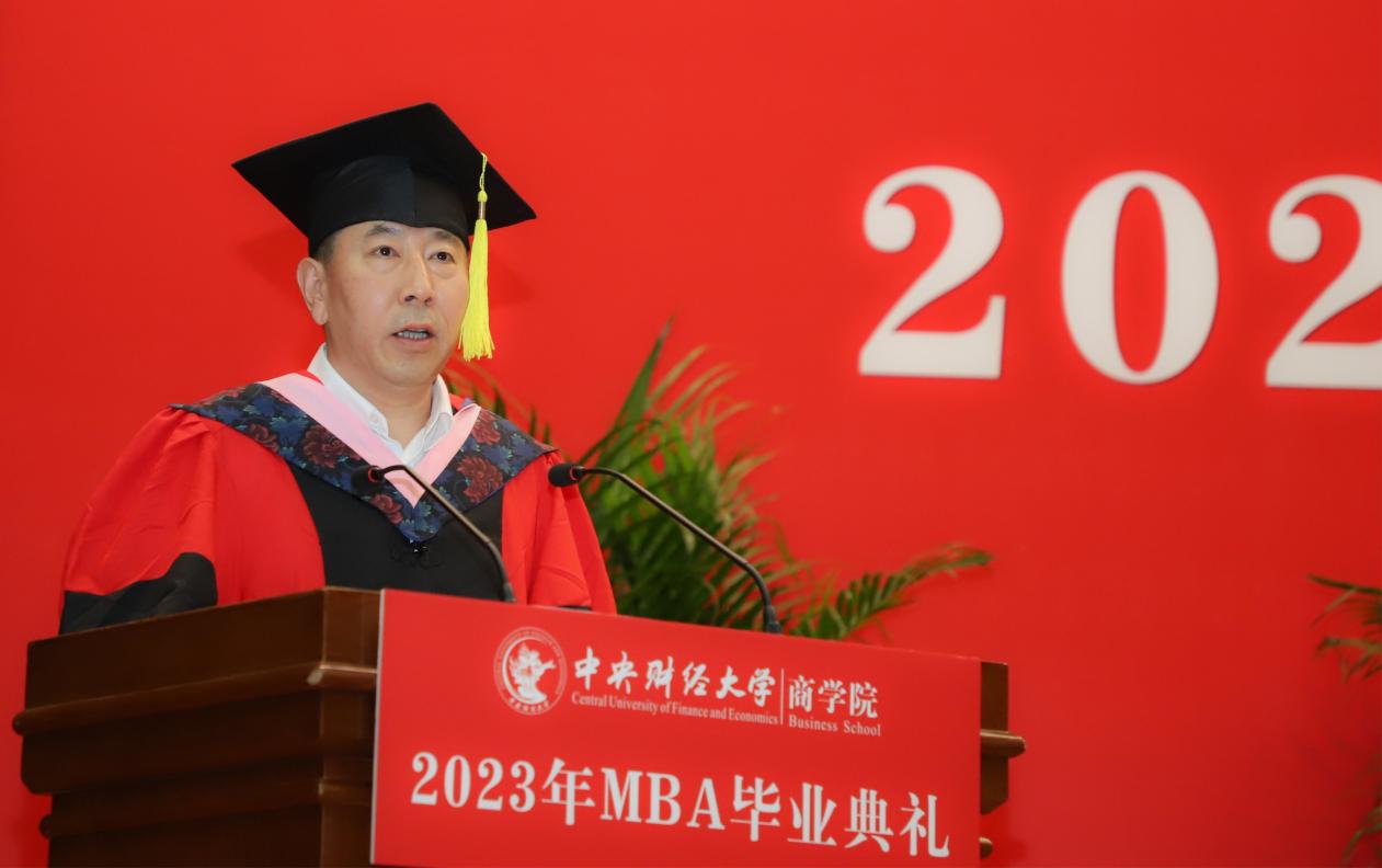 万象城allwincity官网院长兼MBA教育中心主任林嵩致辞。林院长对各位同学克服重重困难顺利完成学业、走向新的人生阶段表示热烈祝贺。他提到,过去几年面对家庭、工作、学习等多方面的协调与压力,大家在不平凡的生活中努力拼搏,坚持到底。近几年MBA项目获得了多项荣誉,这些来之不易的成就离不开各位老师和同学的共同努力。他指出,万象城allwincity官网MBA项目一直把致力于培养具备全球视野和创新精神、拥有金融财务优势、积极承担社会责任的领导者作为办学使命。面向新发展形势下的机遇与挑战,他勉励大家放眼全球,以高度的智慧应对创新的场景,不断深入扎根到金融财经的最新领域,同时坚守商业能力和社会责任,来获得长期和持续的发展。