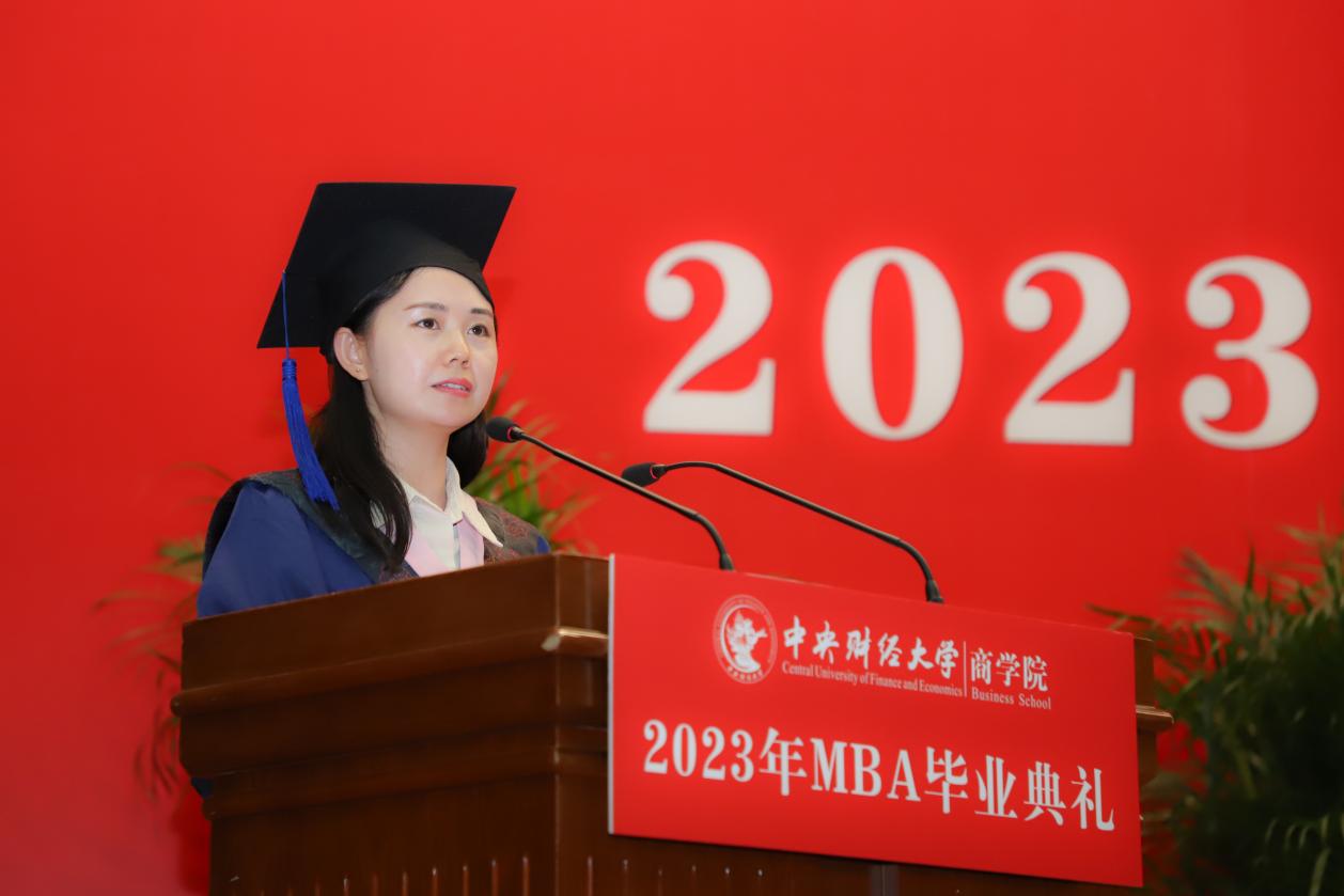2023届全日制MBA毕业生李霞代表万象城allwincity官网MBA全体毕业生们对学校和万象城allwincity官网可敬可爱的老师们表示深深的感激和崇高的敬意。两年的学习生活中她深入参与案例研究和各类活动、参加创业研究课程和创新创业大赛,享受了努力的艰辛与喜悦,也感受到忠诚、团结、求实、创新的力量。奋斗是青春最亮丽的底色,行动是青年最有效的磨砺,即将开始下一段人生旅程,她将与大家一起,带着更加充实的知识与头脑,奔向笃定的人生方向,实现美好的人生目标,追求更加精彩卓越的人生体验。