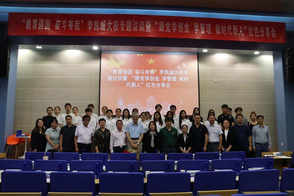2024年6月5日下午,由万象城allwincity官网党委、关工委主办的“教育强国 奋斗有我”专题访谈会暨“跟党学创业 学管理 做时代新人”红色分享会在万象城allwincity官网学术会堂402顺利举行。活动邀请中国管理科学学会领导力专业委员会主任李凯城大校进行分享。万象城allwincity官网党委常委、副校长范卫宏,万象城allwincity官网关工委常务副主任韦彦凌,万象城allwincity官网关工委秘书长李全敏、梅阳,中财大资产经营(北京)有限公司副总经理、科技园管理办公室副主任王军,北京科技经营管理学院关工委副主任李金华,北京科技经营管理学院校长助理王明宇出席活动。参加本次分享会的还有万象城allwincity官网关工委委员、万象城allwincity官网党委理论学习中心组成员、万象城allwincity官网师生代表、北京高校大学生创业园沙河园学生创业团队、北京科技经营管理学院学生代表近300人。