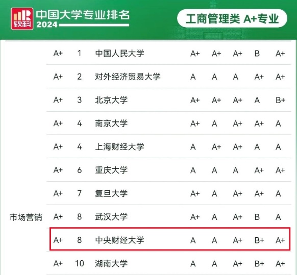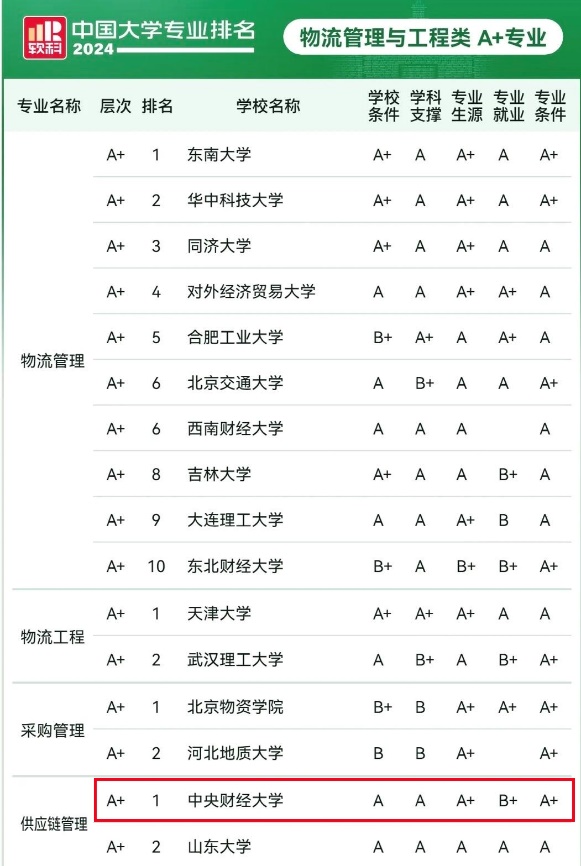 万象城官网市场营销专业和供应链管理专业均获得A+等级,且供应链管理专业位列A+层次第一名。同时,工商管理和人力资源管理也均获得A等级。