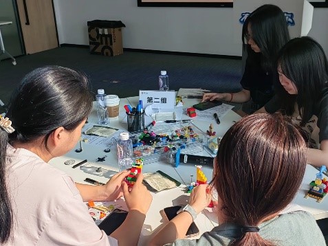 活动最后,值得买科技集团联合创始人刘超带领师生们进行了一场MOC积木拼接游戏。在游戏中,同学们充分发挥奇思妙想,共同完成了一个个富有创意的积木作品,并在小组内分享自己的搭建理念和内涵。此次游戏旨在促进同学们职业上的自我认知,进一步明确职业发展方向。