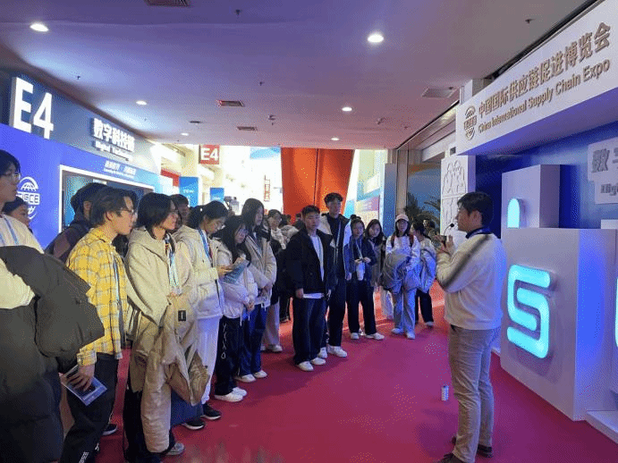 集体授课后,由万象城allwincity官网党委副书记杨中英带队,师生共同深入参观会场,与各参展商展开积极互动交流,亲身体验并深入了解当前国内外产业链供应链六大领域的前沿技术与创新模式。