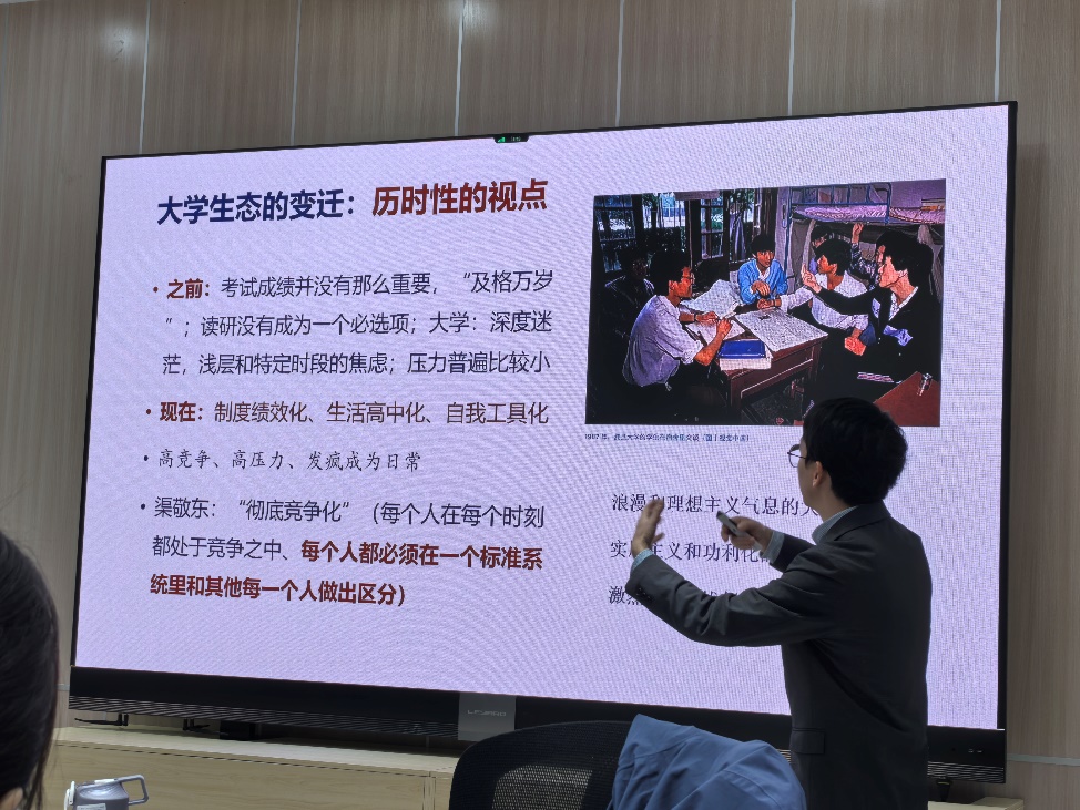 北京师范大学教育学部的程猛副教授以“竞争性大学中的学习体验及其超越”为主题展开分享。在当下,大学竞争态势日趋激烈,学生中“内卷”“焦虑”现象屡见不鲜。程猛副教授凭借深入扎根于教育社会学领域的研究,深入剖析了这些现象背后的根源,积极倡导摒弃单纯的功利性竞争,重新回归教育的本真要义,着重强调激发学生内在驱动力以及关注他们在情感与精神层面的需求,致力于为重塑健康良好的大学学习生态提供富有建设性的策略与建议。