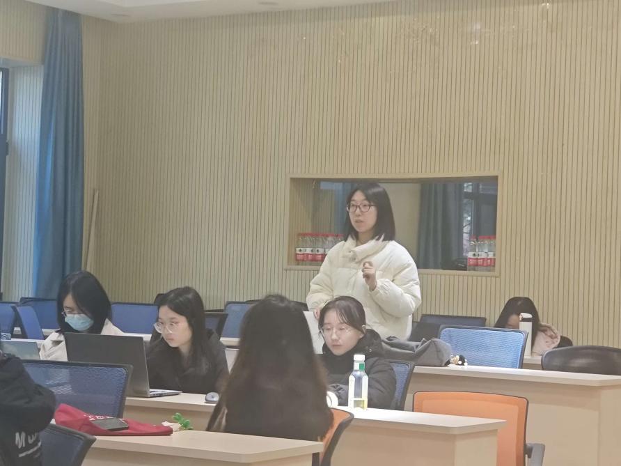 接下来,2022级博士生兰明慧同学从自身经历出发,阐述了申请过程中可能会遭遇的挫折,并分享了论文写作与发表的经验。她指出科研周期长,充满困难与挑战,如选题、数据处理、论文写作及发表等环节都需要付出巨大努力。在她看来,导师如同灯塔和推进器,为学生把握方向、提供资源并给予鞭策。同时,她还分享了自己的写作经验,包括多读顶级期刊文章、多问研究细节、多听讲座和多想研究问题等。