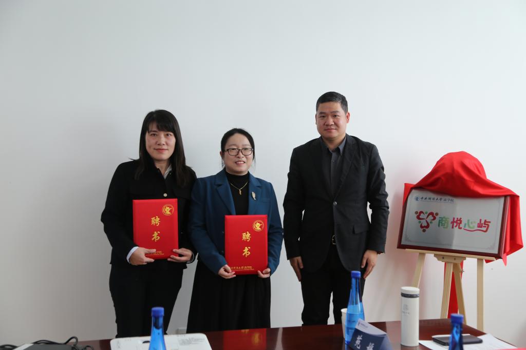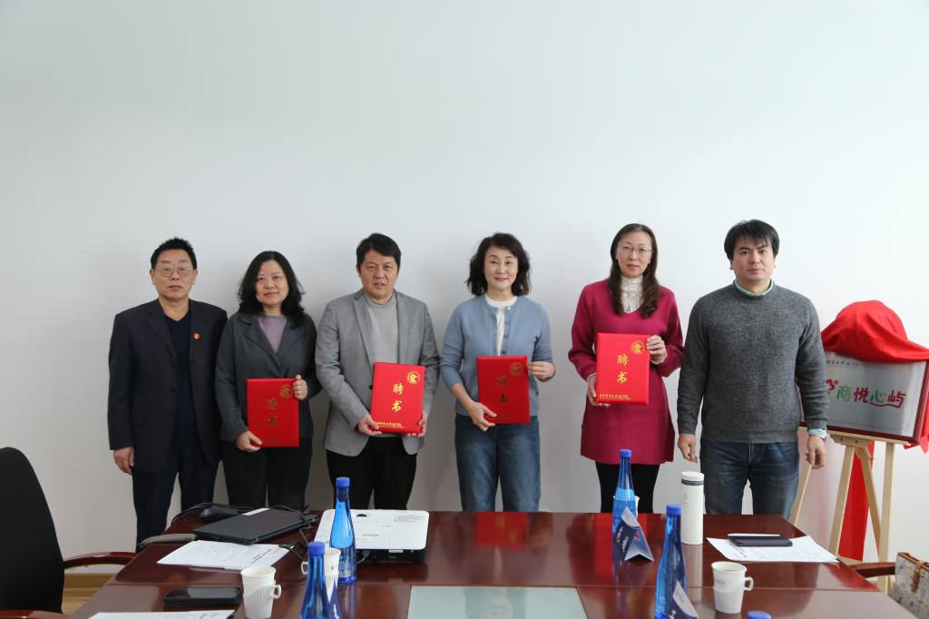 随后,李建军副校长、于晓明部长和李跃新书记共同为工作站揭牌。李跃新书记和林嵩院长为“商悦导师”赵然、苑媛、赵会春、严力群颁发聘书。钟俊杰副部长为“商悦心屿”站长杨中英、副站长龚莉云颁发聘书。赵会春副主任为“商悦辅导员”孔明伟、齐岩、王惠婷颁发聘书。