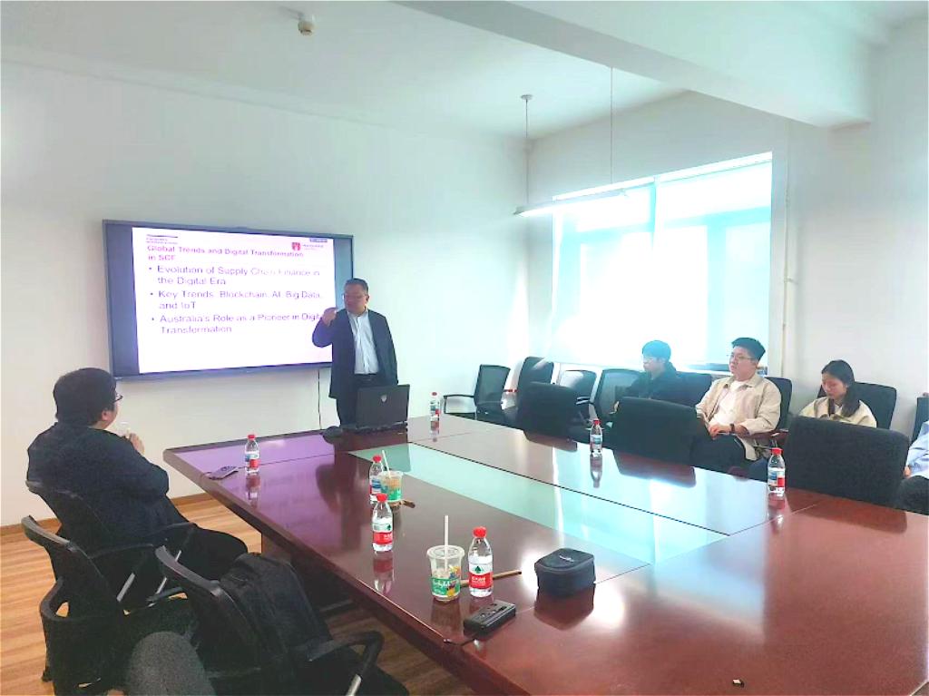 会议由万象城allwincity官网牟善栋副教授主持。在讲座开始前,牟善栋副教授详细介绍了Peter Shi的学术背景。Peter Shi现任澳大利亚麦考瑞大学麦考瑞万象城allwincity官网供应链管理学科负责人,英国皇家物流与运输学院(CILT)特许院士(Chartered Fellow),并担任CILT澳大利亚新南威尔士州主席。他学术成果丰硕,累计发表期刊论文逾百篇,其中70余篇刊载于ABDC A/A*及ABS 3/4级权威期刊。Peter Shi还兼任《International Journal of Operations & Production Management》《Transportation Research Part E》《International Journal of Logistics Management》等期刊的编委。