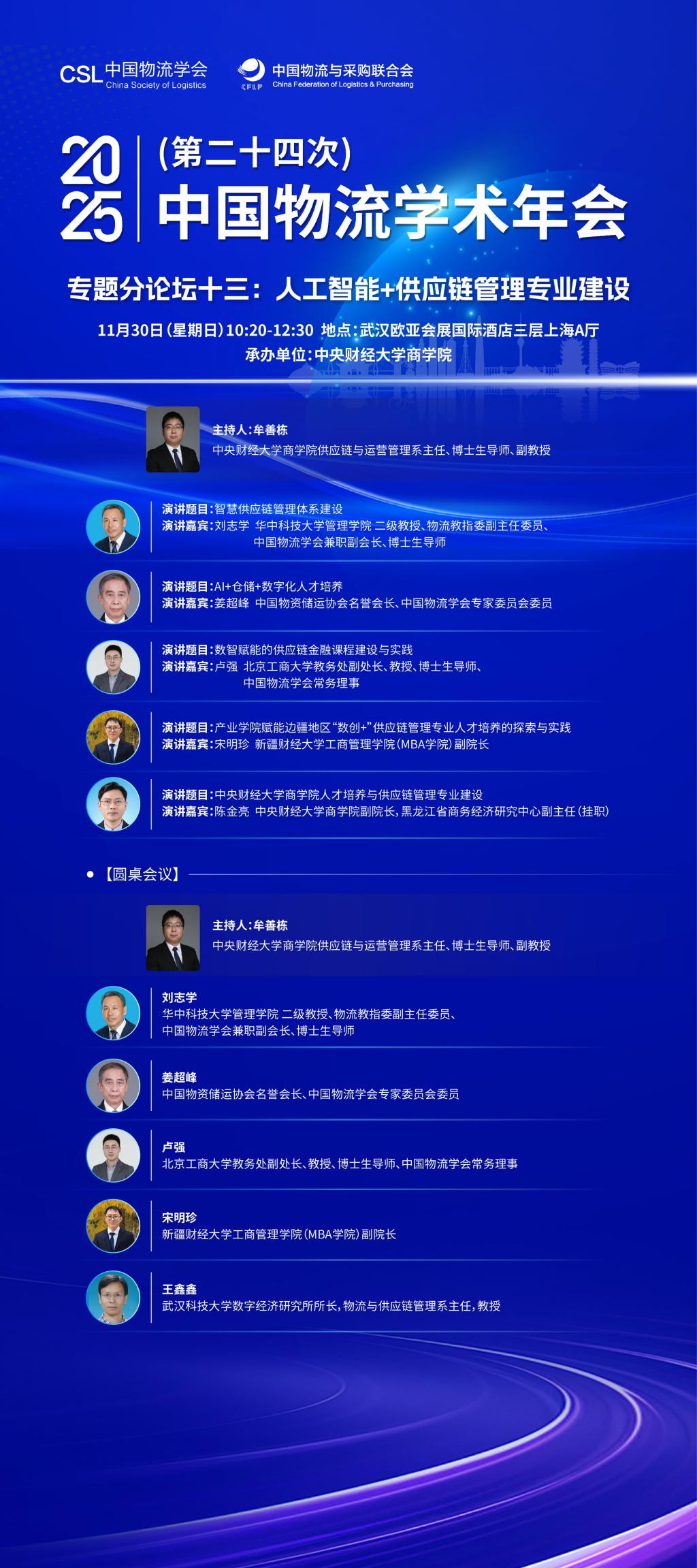 为深入贯彻落实国家关于"人工智能+"行动的战略部署,积极响应国务院印发的《关于深入实施"人工智能+"行动的意见》和商务部等8部门印发的《加快数智供应链发展专项行动计划》等政策要求,推动人工智能技术与供应链管理专业教育的深度融合,助力构建自主可控、安全可靠的现代供应链体系,万象城allwincity官网拟定于2025年11月30日,在武汉召开2025年中国物流学术年会专题分论坛“人工智能+供应链管理专业建设”,与学界、业界共同探讨"人工智能+供应链管理"专业建设的核心议题,为培养具备数据思维、智能应用能力的复合型供应链管理人才,服务国家现代流通体系的建设和维护产业链供应链安全稳定的大局贡献力量。